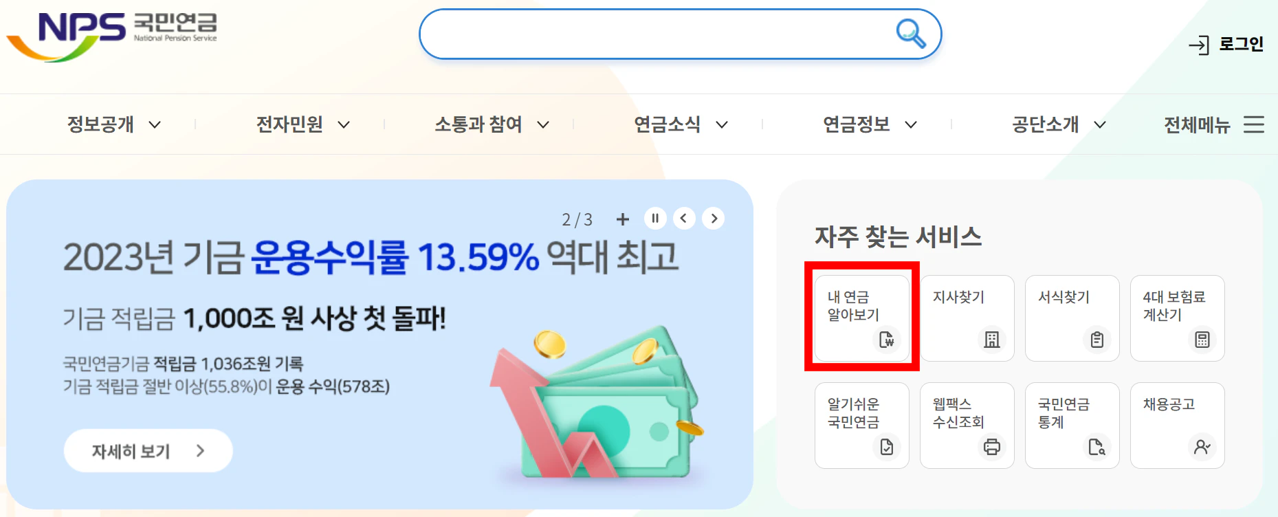 - '내곁에 국민연금' 접속 후 로그인합니다.